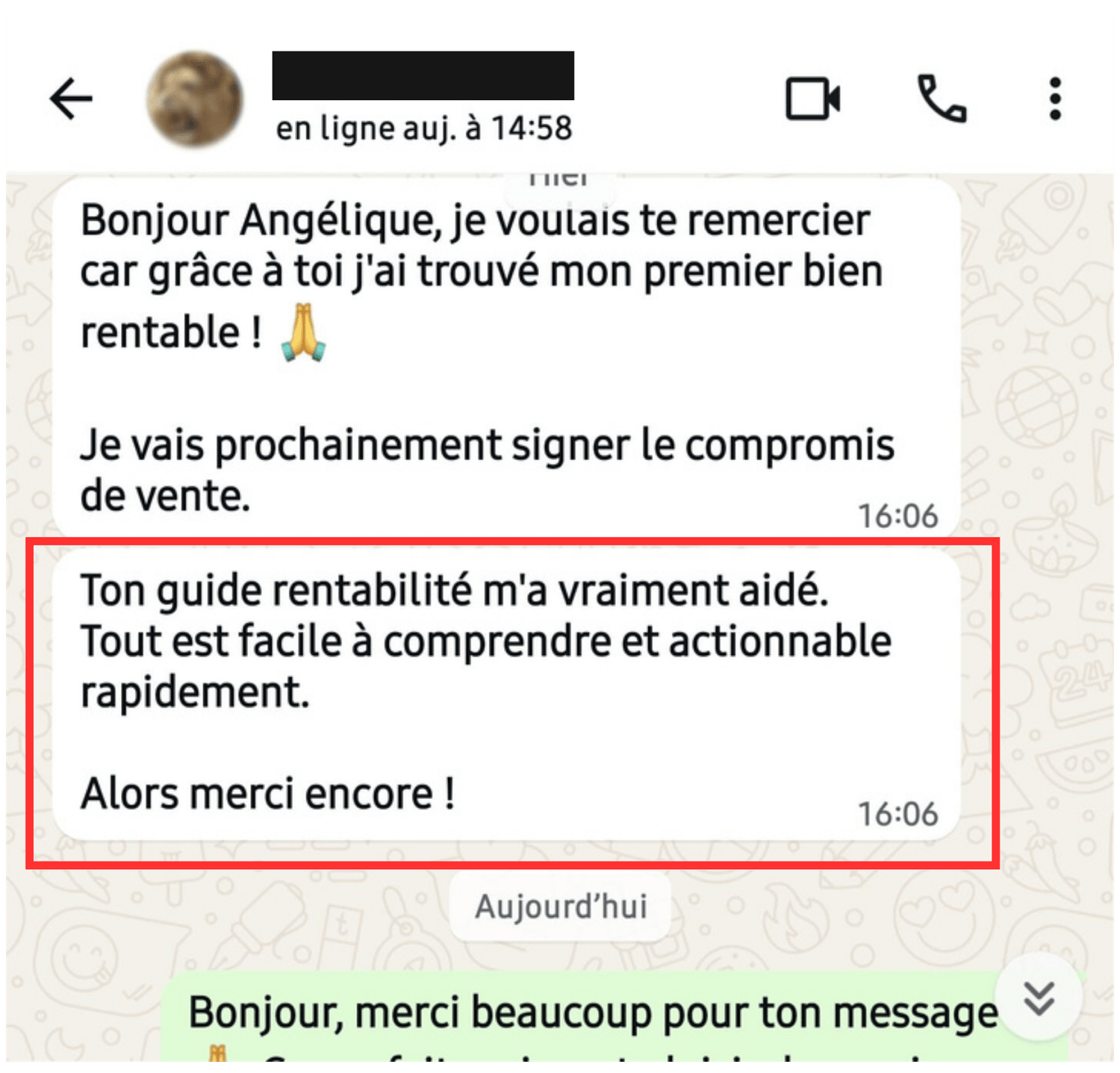 Je pensais que c’était trop compliqué… mais avec ce guide, j’ai enfin compris comment trouver un bien rentable. C’est concret et rassurant.