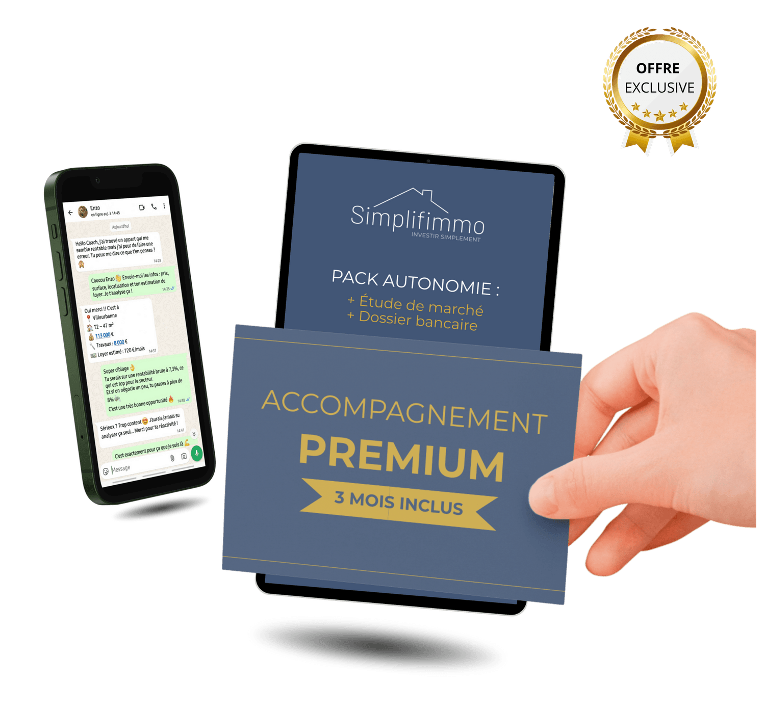 Tu es accompagné pendant 3 mois par WhatsApp, avec une réponse personnalisée sous 24h max. Tu peux me poser toutes tes questions, m’envoyer les annonces qui t’intéressent, me partager ton dossier bancaire, etc. Je suis ton guide tout au long de ta recherche.
